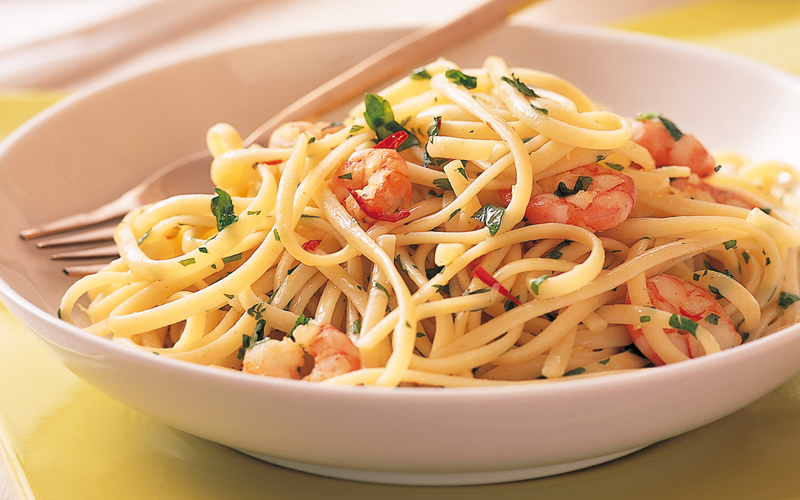 لينغويني مع القريدس (الجمبري) بالفلفل الحارّ - منتديات جعلان