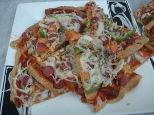 ثم التوابل من كل شي رشة على البيتزا كلها