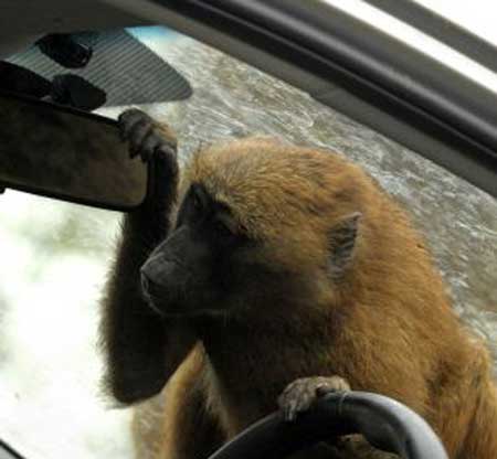 | إخضاع السيارة لمثل هذا الاختبار نوع غريب نفذته قردة | ||